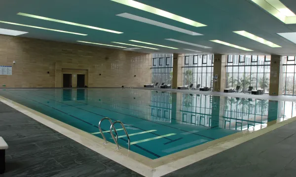 園區擁有各種運動場地,包含恆温游泳池、網球場、羽毛球場、籃球場、壁球館、乒乓球館、健身房以及高爾夫揮桿練習場、五人制足球場等。
