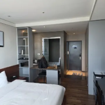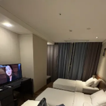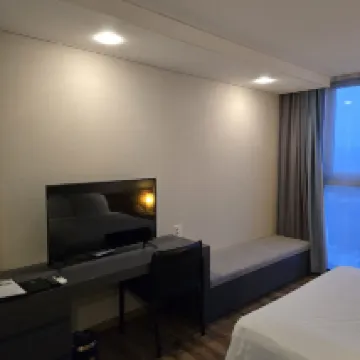 酒店離清州機場很近,前台工作人員服務態度很好,餐廳早餐和中餐晚餐的味道很不錯,且性價比較高!酒店房間設施配備齊全,有浴缸,微波爐,大冰箱,小廚房,以及洗衣機等,衞生乾淨整潔,床鋪舒適,酒店旁邊有24小時便利店,很方便!下次還會入住!
