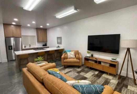 We were driving thru and found this place to stay. It’s a new building and is very cute and easy to find! The home itself is really spacious and could fit a group of people. The only concern was the parking light at night it went directly into the home and caused the whole bottom portion of the home to be lit up. (There’s a bed right under the garage door where the light is shining in) I messaged the owner to recommend some blackout curtains or covers to block the light. Other than this we loved the place and found ourselves wanting to stay longer
