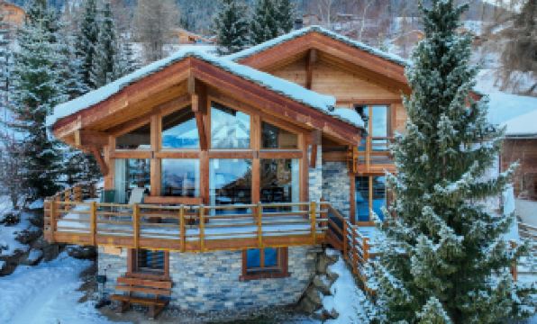 Les Rairettes: Very beautiful chalet "Sebas", 3 storeys, built in 2006. Outside the resort, 800 m from the centre, on a slope, in a cul-de-sac. Private: garden with lawn. Garden furniture, barbecue. In the house: sauna, storage room for skis, ski boot dryer. Bumpy, steep motor access. In Winter: please take snow chains, 4x4 car recommended in winter. Parking (limited number of spaces). Shop 800 m, grocery 1.4 km, supermarket 2 km, restaurant 850 m, bakery 900 m, bus stop "Haute-Nendaz, télécabine" 800 m, railway station "Gare de Sion" 18 km. Golf course (18 hole) 18 km, tennis 2.6 km, gondola lift 800 m, sled run 2.2 km, ice rink 1.6 km, children's playground 2.2 km. Nearby attractions: Alaïa Bay - Surf Park 16 km, Domaine des Iles 18 km. Well-known ski regions can easily be reached: Nendaz 4 Vallées - Tracouet 800 m. Hiking paths: Bisse Vieux 350 m, Bisse du Milieu 1.4 km. "Sebas", 5-room chalet 150 m2 on 3 levels. Spacious, comfortable and tasteful furnishings: large living/dining room with panoramic window with open-hearth fireplace, cable TV and CD-player. Exit to the terrace. 1 room with 1 double bed (180 cm, length 200 cm), bath/shower/WC. Exit to the terrace. Open kitchen (oven, dishwasher, 4 induction hot plates, toaster, kettle, electric coffee machine, Capsules for coffee machine (nespresso) extra, raclette grill, fondue Set (cheese)). Heating. On the lower ground floor: 1 room with 1 double bed (180 cm, length 200 cm). Shower, sep. WC, Sauna. Upper floor: 1 room with 2 beds (90 cm, length 200 cm). 1 room with 1 double bed (180 cm, length 200 cm). Exit to the balcony, north facing position. Shower/WC. Balcony, north facing position and west facing position, large terrace 50 m2, south facing position and, east facing position. Barbecue (portable). Very beautiful view of the mountains and the valley. Facilities: washing machine, dryer, sauna, children's high chair, baby cot, hair dryer. Internet (WiFi, free). Parking (2 cars). E-charging station. Please note: non-smokers only.