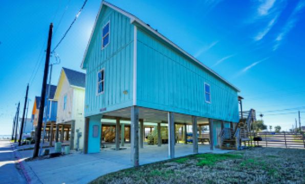 Inside, the modern, fully-equipped kitchen boasts a large counter with 8 barstool seats, perfect for enjoying meals with the entire crew. With stainless steel appliances, it's a chef's dream, allowing you to whip up your favorite home-cooked meals after a day of seaside adventures.