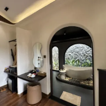 七年前來過,這酒店好像是擴建了一部分。 這次住的B1 Bungalow,衞生間很大,床品不錯。早餐選擇挺多的。進出房間前台都會開車送。唯一不足是房間牆面確實有黴斑。出行如果沒有機車的話,最好就是grab。走路離熱鬧的區域有點遠。