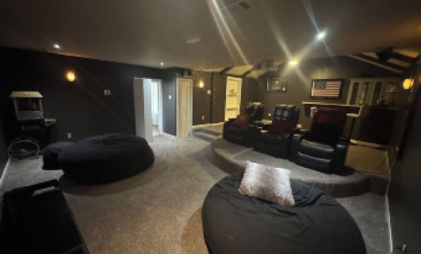• Flexible spaces for up to 12 guests with air mattresses in the theater or game room