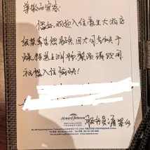 這次來大同入住金地豪生大酒店四個晚上,整體體驗遠超預期。雖然酒店建築不像全新酒店,但這份小小的年代感完全被無微不至的服務所彌補。 入住期間,每晚回到房間,都會在桌上放着兩杯杯温潤的梨水和一張手寫的便簽,字跡工整飄逸,內容是歡迎入住並因氣候乾燥特意準備的梨水,這份意料之外的關懷,瞬間撫慰了旅途的疲憊。 特別感謝“姜阿姨和郭阿姨” 從這些細節能真切感受到酒店是真正在用“心”服務,而不僅僅是執行流程。酒店的位置也很好,從房間窗户看出去,城市風貌盡收眼底,視野開闊。雖然設施上可能不如一些新潮的設計酒店,但整潔舒適,更重要的是有一種“家”的温暖。下次來大同,這裏依然是我的不二之選。