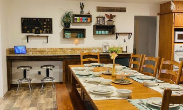 • A beautiful 9-foot farmhouse dining table perfect for shared meals