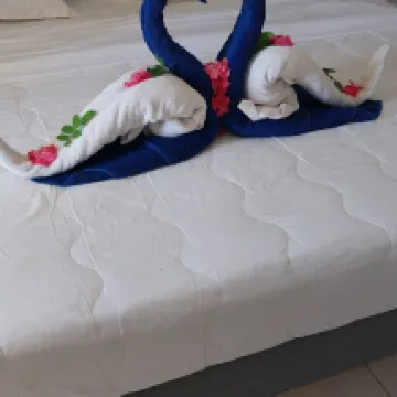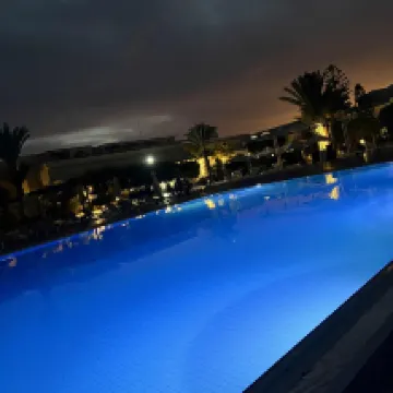 De splendides vacances pour nous. Personnel agréable et dévoué. De jolies pliages de serviettes avec pétales sur le lit. Dans la brochure la piscine me semblait petite mais non, elle est tout à fait correcte et toujours de la place à cette période de l’année. Nous avons vraiment apprécié la cuisine, varié et vraiment très bonne. Animateurs sympathiques et entraînant. J’espère bien y retourner