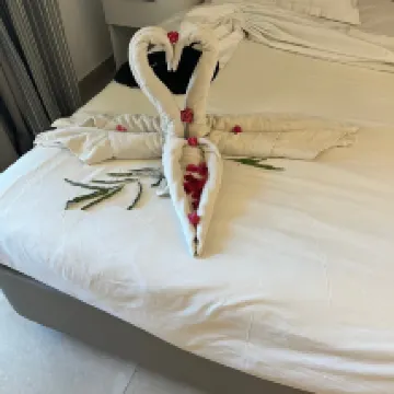 來自住宿之回應: Chère Valérie, Quel bonheur de lire votre magnifique retour ! Toute notre équipe est très touchée par vos mots et ravie que votre séjour ait été à la hauteur de vos attentes. Nous sommes heureux que vous ayez apprécié la qualité et la variété de notre cuisine, la convivialité de nos animateurs ainsi que le confort autour de la piscine. Un merci particulier pour vos compliments à propos de l’attention portée aux détails dans la chambre : ces petites attentions, comme les pliages de serviettes décorés de pétales, sont justement pensées pour rendre vos vacances encore plus mémorables. Savoir que vous repartez avec de si beaux souvenirs est la plus belle récompense pour notre personnel, qui met tout son cœur à offrir un service chaleureux et attentionné. Nous serons enchantés de vous accueillir à nouveau lors d’un prochain séjour, et de continuer à vous faire vivre d’excellentes vacances. À très bientôt, Skander Missaoui Directeur