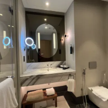 Близко к аэропорту и старому городу Дохи. До метро 10 минут пешком. Номера просторные и удобные, с двумя санузлами) отличный небольшой бассейн на крыше с прекрасным видом. Не понравилось, что в номере на двоих был почему-то один халат)) и ещё в душевой иногда пахло канализацией. Завтраки разнообразные и хорошие , а так же есть бесплатный снек бар с 17 до 18.30 где можно чуть чуть перекусить. В целом отель очень приятный. Персонал очень приветливый .