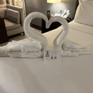 Housekeeping staff (including Saibu, Jamuna, Horace, Sanjeev) were amazing and super friendly, and checked if we needed anything extra. Horace and Sanjeev surprised us several times with amazing art work of a lotus flower and pair of swans made from rolled towels - absolutely brilliant!