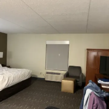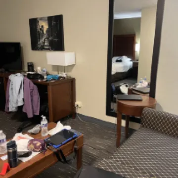 Besides needing staff to cover busy times such as check in and out, the accomodations are excellent. Clean marble bathrooms with white towels. Beds white as snow and comfortable. First time seen house staff friendly and responsive to your needs. Downers Grove hotel have elevators to third floor. Breakfast was standard for first and menu posted for each morning and the eating area was clean and kept maintained by kitchen staff as people dined left tables..Noise free rooms. Individual temperature rooms controls. Wide hallways and have communication friendly rooms whatever these are. Again, communication to the front desk from room was cumbersome as long rings to answer from phones I'm rooms by front desk staff lady. Can perhaps use a two person a peak times or as a balance during the day for better response.