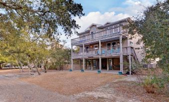 歡迎您入住我們位於北卡羅來納州達克鎮的這處寬敞明亮的度假勝地「好潮汐」(Good Tides),探索這裡的私人海灘、餐廳和商店。這棟美麗的房子四周環繞著橡樹,私密性極佳,您可以在門廊的鞦韆上啜飲甜茶(或瑪格麗塔酒!),享受愜意時光。開闊明亮的起居空間是家庭聚會的理想場所。樓上的陽光房和樓下的遊戲室(配備吧台和桌上足球)也提供了額外的活動空間。三層樓高的露台朝向東西,讓您享受海風、日出日落的壯麗景色。私人泳池、戶外淋浴和熱水浴缸就在後門外。您的家人一定會喜歡這棟美麗的房子。