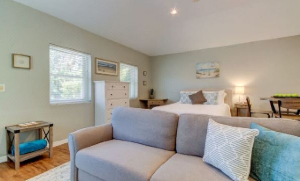 *There are 3 apartments on site, they are all available for rent if you have a larger party. Cute & comfortable! Great for work or play. Rest & relaxation. This unit only has a cook-top stove; No oven. There is no cable but there is a Roku TV that has all the main streaming services available. The couch is very long and could fit another guest if needed.