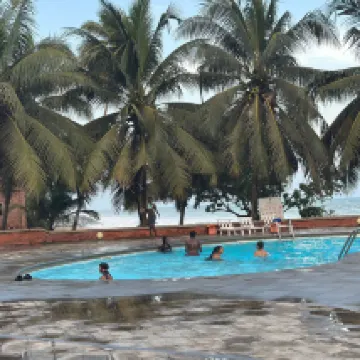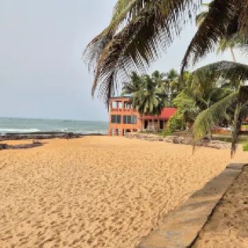 Coconut Grove Beach is an important land mark in Elmina is an enchanting resort on the sea where you can spend a relaxing time with stunning view of the sea and the sun with its giant shells Coconut Grove Beach is a major landmark on the Elmina coast is an enchanting seaside resort where you can spend relaxing moments with a breathtaking view of the sea and the sand with its giant shells. You can have your meals directly on the golden sand surrounded by the echo of the waves. The resort is surrounded by a wide park where you can go horse riding too. The proposed menu varies from international to traditional Ghanaian. The rooms are clean and large, the shower is large and you can enjoy a good flow of water which is quite rare in Ghana This is a place where you spend a wonderful and unforgettable staying. 3 agosto 2022 per una sola notte. Coconut Grove Beach è un importante punto di riferimento sulla costa di Elmina è un'incantevole località balneare dove trascorrere momenti di relax con una vista mozzafiato sul mare e sul sole con le sue conchiglie giganti. Potrete consumare i vostri pasti direttamente sulla sabbia dorata circondati dall'eco delle onde. Il resort è circondato da un ampio parco dove è possibile praticare anche l'equitazione. Il menu proposto varia dall'internazionale al tradizionale ghanese. Le camere sono pulite e grandi, la doccia è grande e si può godere di un buon flusso d'acqua che è piuttosto raro in Ghana. Questo è un luogo dove trascorri un soggiorno meraviglioso e indimenticabile. 115 euro camera e prima colazione, molto molto bell!o