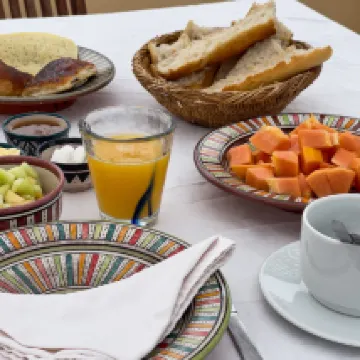 Riad Watier is a gem in the Medina in Essaouira, a casual and comfortable inn with spacious rooms, a cozy library, an in-house hammam, and a roof top deck that made us feel right at home. The breakfast was simple, delicious, and healthy. But, it was the service that was unbelievable. Fatiha attended to us with warmth and made sure that we had everything that we needed. On our first night, she had us delivered to a nearby restaurant and had us escorted home to make sure that we didn't get lost before we had a chance to find our way around in daylight. One thing to note (and is not unique to Riad Watier)—There are a lot of stairs, so not recommended for people with mobility issues.