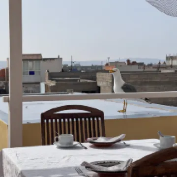Riad Watier is a gem in the Medina in Essaouira, a casual and comfortable inn with spacious rooms, a cozy library, an in-house hamam, and a roof top deck that made us feel right at home. The breakfast was simple, delicious, and healthy. But, it was the service that was unbelievable. Fatiha attended to us with warmth and made sure that we had everything that we needed. On our first night, she had us delivered to a nearby restaurant and had us escorted home to make sure that we didn't get lost before we had a chance to find our way around in daylight. One thing to note (and is not unique to Riad Watier)—There are a lot of stairs, so not recommended for people with mobility issues.