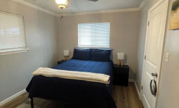 Both bedrooms are designed with comfort in mind—one features a plush queen bed, while the other offers a king sized bed, accommodating small families or groups of friends comfortably. The modern bathroom is stocked with fresh towels and essential toiletries to enhance your stay.