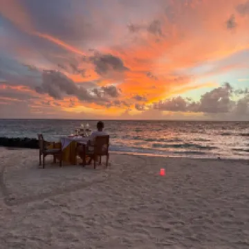 Capolinea del viaggio di nozze. Dopo aver trascorso due settimane di esplorazione e scoperta, arricchendoci e al contempo stancandoci siamo approdati in questo angolo di paradiso. Clima perfetto, tranquillità e sorrisi a 360gradi. Abbiamo perdonato in una water villa, esperienza CALDAMENTE consigliata: c’è tutto ciò di cui hai bisogno, privacy, confort, spazio e accesso al mare, potresti anche non uscire mai da lì. Se non fosse che l’isola offre diverse attività e perderle sarebbe un peccato: Escursioni giornaliere per nuotare con gli squali balena, le tartarughe, avvistare i delfini, le mante, esplorare il reef... O gli sport acquatici: kite surf, jet sky, fly board… ce n’è per tutti! Hai bisogno di relax puro? Fermati sulla spiaggia bianca e candida e lasciati cullare dal rumore delle onde. O goditi un massaggio nella SPA dell’isola. Open bar tutto il giorno, zona ristorazione sempre diversa che copre colazioni, pranzi e cene a buffet. Veramente, c’è tutto ciò che serve per “spegnere” la testa e godersi un po di sano relax.