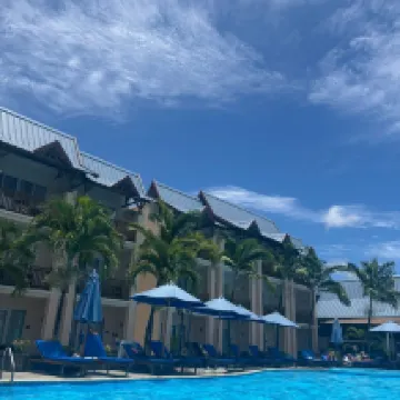 Nous avons passé un agréable séjour. Les chambres très propres et spacieuses avec frigo. La salle de bain avec grande douche et WC séparé très appréciable. Nous étions au 3ème étage avec une vue sur un magnifique jardin et sur la mer. La plage superbe au pied de l'hôtel avec transats. Nous avons loué une voiture à l'hôtel pour un prix très abordable 27€ la journée km illimités. Tout le personnel est trés gentil et attentionné. Une mention toute particulière à Raina pour son professionnalisme, son sourire et sa bienveillance. J'ai fait mes achats souvenir au petit magasin de l'hôtel. Il sont très gentils et les prix pas plus élevés qu'au marché de Port Louis. Une belle piscine bien entretenu mais petite. Côtés qui nous ont déçu : Les journées Day package, personnes qui viennent pour la journée et qui boivent à outrance et trés bruyant...ils envahissent les transats et la piscine. Un groupe de filles avaient tellement bues que deux d'entre elles ont vomi sur les transats près de nous. C'était pitoyable et écœurant puis rincer des cheveux longs dans la piscine. Le lendemain un autre groupe de filles pour la journée.... Elles ont vomi dans le lavabo du restaurant....bon appétit. Tout pourrait être parfait si à l'avenir la direction pouvait éviter ces incidents en évitant ces journées Day .