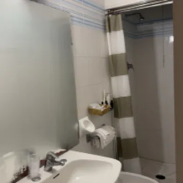 前台人都很好,可以幫忙暫存行李,酒店有雙層玻璃,隔音效果不錯,不過下面是一條比較熱鬧的街,因此我們還是需要帶耳罩,如果可以接受有些聲音的;可以考慮,這次住的酒店就這個有雙層玻璃,其他的單層多少都隔音效果更一般。沒有拍圖,裏面的衣櫃和桌子是比較有年代的木質的。意大利的酒店普遍洗澡地方很小,電梯也超級小,普遍這樣