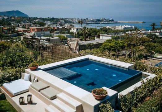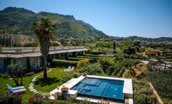 Hotel situado na regiao agitada de Forio, essa regiao e mais legal que a regiao do porto de Ischia, o hotel tem quartos grandes com cozinha completa, um jardim legal, o nosso nao tinha piscina entao sao poucos os apartamentos que tem, nao tem piscina coletiva, o atendimento no check in pela Alessia foi otimo, todos nos atenderam super bem, existe um supermercado bem proximo, o acesso a entrada do hotel e meio estranha, quem esta de carro tem que ficar atendo, pode entrar pelo estacionamento do supermercado ou da rua ao lado quando o supermercado estiver fechado, a praia e perto caminhando, tem estacionamento, nao tem cafe da manha nem limpeza dos quartos diariamente, ar condicionado otimo,tem estacionamento na frente da entrada dos apartamentos, entao tudo vai depender do que voce precisa em sua estadia nessa regiao, o por do sol desse lado da ilha e surreal
