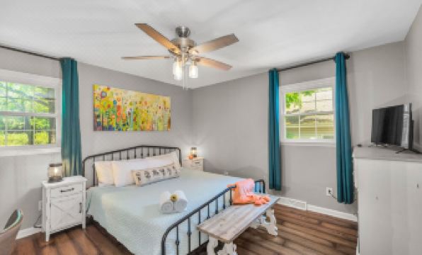 We are thrilled to welcome you and your fur babies to our delightful 3 bedroom and 2 full bath 1300sq/ft bungalow just minutes from charming downtown Fort Mill with all its old school warmth, vintage vibe, cafes, boutiques, taverns, golf, live music, parks, and churches. The perfect sweet retreat at the end of a day of sightseeing, celebrating with family and friends, after the big game, or once you’ve nailed that business meeting or a new job.
