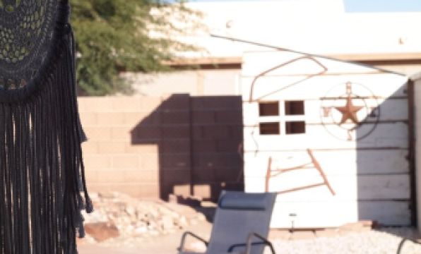 Nestled in the foothills of Yuma AZ, this 3 bedroom 2 Bathroom boasts a large yard with a sparkling pool (not heated, so pretty cold in the winter months) . Enjoy the mild winter days and beautiful winter nights on the large covered patio, complete with large BBQ gas grill, outdoor dining table, and lovely seating area, or come during our spring and summer and enjoy the refreshing pool, and cool A/C to escape the AZ heat . There is a large yard for your full enjoyment complete with new turf area for lounging. The great-room has a custom island with seating, a small dining table, and a fully stocked kitchen. A leather couch and recliner for your T.V. watching comfort.