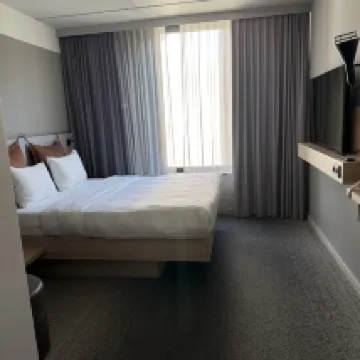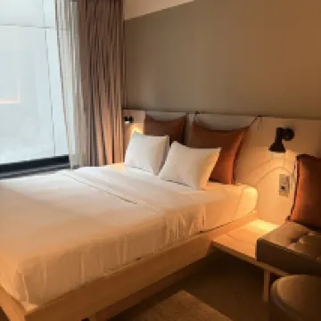 Moxy可能適合年輕的獨自旅行的人,但不適合我們一家。房間超級狹窄,隔音不好,沒有熱水壺,沒有提供給客人的飲用水,沒有保險箱和冰箱。我向前台要水,他們說可以直接從浴室水龍頭喝,但房間裡沒有杯子。服務很不友好,也很冷漠。 這家Moxy所在的地區特別破舊。門口有很多無家可歸的人,包括那些吸食**類藥物的人。我們走到雜貨店買水時感覺很不舒服。我不會推薦這家酒店。