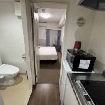 房間整體設施完整、乾淨、空間也很大,還有廚房以及廚具,唯一比較不滿意的就是櫃台深夜及早上沒有人,前一天晚上我們問了是否早上能幫忙叫taxi,櫃台人員表示可以直接路上攔,結果我們隔天早上完全攔不到車,櫃台完全沒人沒得問,後來是去附近的APA飯店櫃檯人員幫忙我們找了二十分鐘才終於能搭車去機場,下次可能直接考慮改住APA服務比較好...