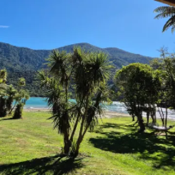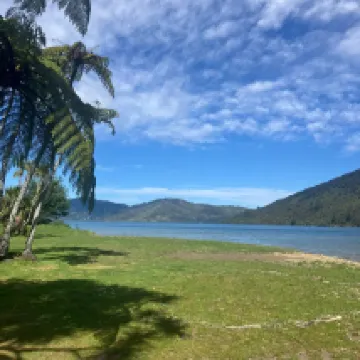 Prachtig gelegen lodge waarin zich het restaurant bevindt. De verblijven zijn in losse gebouwen. Wij hadden een cooks cottage,met mogelijkheid om zelf te koken als je de kosten wilt drukken. Goede bedden en voorzieningen. Prima wifi op hele terrein Gratis gebruik gemaakt van kayak,ook sup's aanwezig. Super vriendelijk en behulpzaam personeel. Restaurant had mooie gerechten en veel glutenvrije opties. Bediening kent coeliakie en bijbehorende restricties voor bereiding voedsel. Dat maakte dat ik er met een veilg gevoel heb gegeten en niet ziek ben geworden. De lodge ligt aan de Queen Charlotte track, dat maakt het extra aantrekkelijk om hier te verblijven.