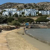 Amazing hotel,set on the edge of the village across from a beautiful quiet sandy beach and next to a handful of little restaurants and tavernas. This is a great example of hospitality done well.fabulous staff,beautiful rooms and public areas great food and all done with style and service. I would recommend this hotel too anyone looking for beautiful understated service all day long. They cannot do enough for their customers .