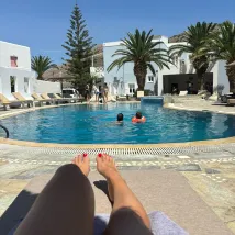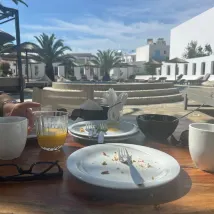 The staff were all so friendly and kind. Very helpful with suggestions when we were going to Empouli. We visited Ciel beach club which we loved. The bedrooms were tastefully decorated and the hotel is a lovely boutique style hotel with design decor. The breakfast offered great selection. We had lunch by the pool area which was great with wide range of food options. My girls loved the milkshakes and fruit platter and fresh orange juice along with cocktails in the evening. It was my twins 18th and they organised a lovely cake to celebrate. Nothing was too much trouble. The beach is just across the road and a number of nice tavernas walkable. Very chilled. Lounging by the pool in the afternoon was very relaxing.