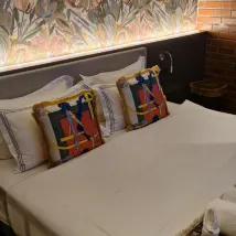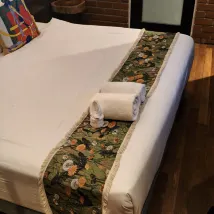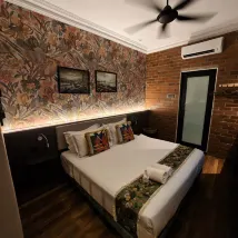 南洋風格的酒店,位置很好,去哪兒都方便,我們五個人定了一個雙卧室的房間,三張大床,春季期間六百多塊性價比很高