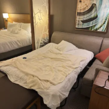 沙發床太糟糕了。彈簧肯定壞了。他們立即換了房間。但情況並沒有好多少…需要投資解決這個問題