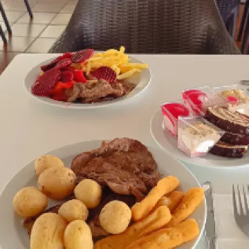 Buffet de los más precarios que he probado. Solo ceno fruta y pedí algo más variado ya que se había acabado el melon (melón plátano y pomelo cortado) y me dijeron que no había nada más. Eran las 7.30 de la tarde y el buffet empieza a las 6.30 y acababa a las 8.30 de la tarde y ese era el aspecto de la fruta. Yogures a granel ( ni soja o sin lactosa). Leche en desayuno sólo entera. Sin hablar de la carne o pescado. Siempre salchichas, hamburguesas procesadas , nuggets, palitos de pescado, empanadillas, patatas fritas. en fin todo fritanga. Se me han hecho largos los 9 dias