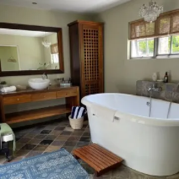 When we entered our room at White Water Farm we were literally blown away! Totally gorgeous and so beautifully decorated. A gorgeous sitting area, kitchenette and two fab bathrooms and dressing room. A wonderful terrace where we had an amazing evening braai all ready to cook by our hosts. Gorgeous pool area. Could not ask for more Perfection! A lovely breakfast brought to our room with fresh eggs ready to cook. Can’t wait to visit again next time we are in the area.