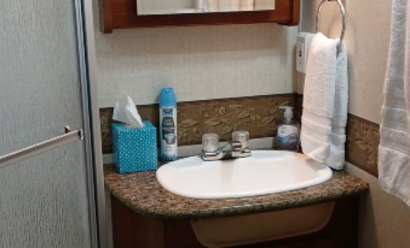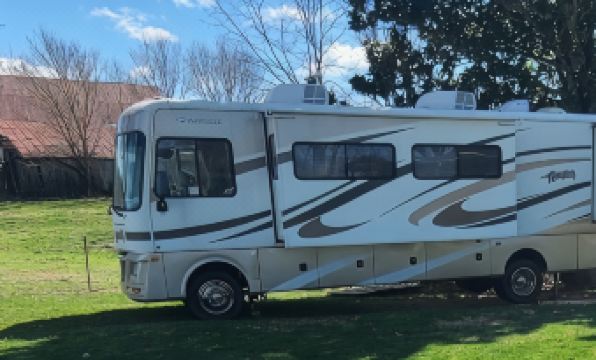 Conveniently located 3 miles off I-81 at exit 50 & close to Kingsport TN, enjoy your stay in a 33' long motor home located near our home. Great for a stop along the way, a local event/festival, easy weekend glamping, or a contract job in the area. It has a private bedroom with a queen size bed, bathroom w/shower, living room with a full-size convertible sofa/bed, a dinette that converts to a bed, a reclining chair, and a fully equipped kitchen. It's a bit of country living on a working farm.