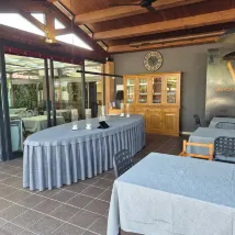 Oltre le aspettative. Camera praticamente nuova con tutti i confort persino bollitore per bevande calde in autonomia., molto pulita e ben curata, disponibilità di balcone privato. Ristorante eccellente, cucina squisita e piatti presentati a regola d’arte, possibilità di una vasta gamma di vini. Disponibilità di piscina all’aperto con vasca idromassaggio e giardino tutto ben curato. Posto auto assegnato custodito. Posto molto tranquillo e di relax. Personale molto cortese e competente al ristorante come i proprietari cordiali e gentili con un particolare occhio di riguardo alla struttura. Esperienza da consigliare.