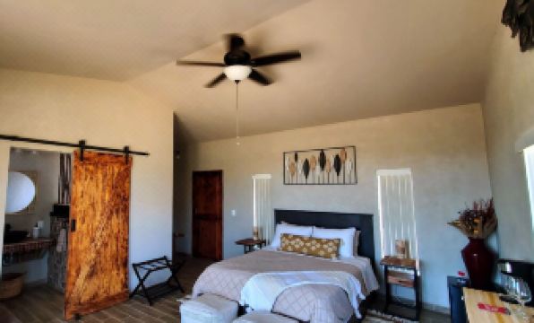 Beautiful and private Cabin/Bungalow in the heart of Valle de Guadalupe. Located within Terra Monarca, perched on a hilltop with unobstructed views of La Ruta del Vino. Walking distance to Vena Cava and sitting across from El Cielo and a few minutes drive to Monte Xanic, Adobe Guadalupe, Montefiori, etc., and award winning Restaurants like Finca Altozano, Olivea, Kous Kous, etc. Terra Monarca is a safe, private and fully fenced property, offering relaxation and peace. Your hosts at Terra Monarca will make sure to offer you a wonderful and memorable visit to Valle de Guadalupe. Cheers!About pets:Pets allowed: dogs and cats (limit 2 total).About checkOut:Check out before 11:00 AM.About children:Children allowed: ages 0-17.About checkIn:Check in after 4:00 PM.About smoking:Smoking allowed: in designated areas.Please safely discard cigarette butts..About minBookingAge:Minimum age to rent: 21.About events:No events allowed.
