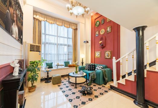 巴黎復古·投影巨幕兩室一廳loft豪華大床房(VIP影視會員+配監控檢測儀+冰箱洗衣機+親子情侶)