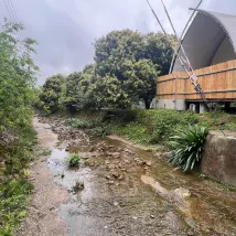 環境真的很舒服,溪水很清涼 小朋友非常喜歡 玩的很盡興! 免費提供燒烤的道具很方便 建議自己帶食材 衞生方面其實沒有太大問題 但是床上會有很多小蟲子 木屋外面的地板會有很大的螞蟻 有些會爬進房間 户外很難避免 還有鵝在我男朋友拖鞋上拉💩 也是很搞笑的回憶😭