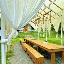 進入營地,景色宜人,空氣清新,管家會提前跟你溝通好入住訊息,入住後會隨時滿足你的要求,小院裏有泡池,滑梯,旁邊有小溪可以玩水撈魚 小朋友們玩的很開心