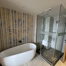 這酒店太驚喜啦!房間整潔寬敞,床品柔軟舒適,窗外視野也不錯。浴室的浴缸超有格調,馬賽克牆很別緻,泡個澡太愜意~ 設施新、衞生好,性價比拉滿,下次還選這!