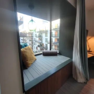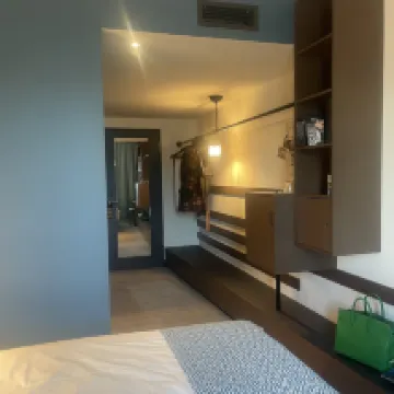 The hotel is nicely designed and in a very good location. The room is spacious.