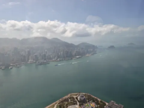 酒店位於香港最高建築環球貿易廣場內,是香港最高的酒店,靠近九龍地鐵站和西九龍高鐵站,樓下就是圓方大型商場,房間設施雖然有點舊,但保養的不錯。服務細心(前台女楊經理及早餐着深色制服女領班服務貼心,總共就吃了二個早餐!!!)早餐豐富,118層樓頂游泳池非常捧!
