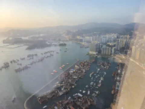 位置不好,出租車進來要繞個大圈子,開出去都會堵車。人也不好走路出去。電梯人都很多,要等。樓下是工地,天際100也在維修。高樓觀景酒店但是房間窗户都臟到包漿了,太臟太臟了,這輩子見過最臟的窗户;客人明明很多很擁擠為啥沒錢洗窗户?第一天晚飯後回酒店和外國人一個電梯上去,到了大堂有人沖過來問我們打哪兒來的,我們拿出房卡才讓我們走。你們怎麼不問外國人?隔音不好,樓上一直咚咚咚的。洗手間連自動馬桶都沒有,而且水壓不行,衞生紙沖不下去,太可笑了。這段時間天氣冷,頭兩天空調能達到24度,後面衹有純冷氣,睡覺還得再加個浴袍,冷得哆嗦。不會再選擇。
