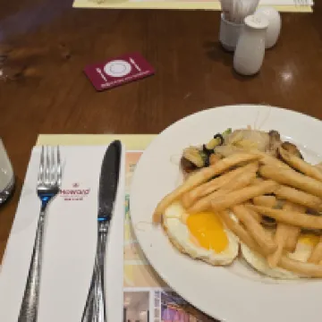 整起乾淨度佳,枕頭稍微軟塌了點,早餐可以吃的很飽,今天炒米粉好吃,薯條酥脆,有全熟蛋半熟蛋跟茶葉蛋可選取,小朋友也有麥片