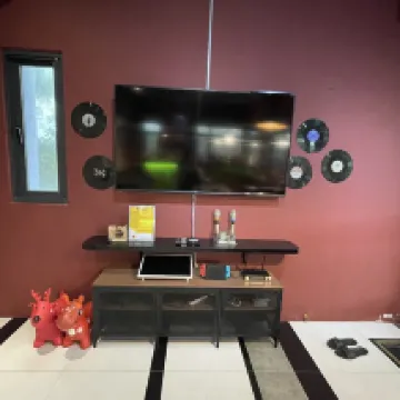 入住是在除夕夜,滿奇妙的。 剛好碰到有一大家子的人吃團圓飯, 感覺自己好像是亂入的,哈哈。 整棟房子外觀是紫色的, 進入屋內有遊戲設備可以借的樣子。 但管家昨天實在太忙,沒有跟我們介紹設施。 房間裡面的燈罩有蜘蛛網,不太ok。 所以就沒有拍照。 冷氣跟暖氣開了感覺沒有太大作用, 所以後來開窗睡覺, 不開窗戶房間濕氣滿重,也比較悶的感覺。 床偏硬,睡起來很不習慣。 浴室有免治馬桶,大大加分。
