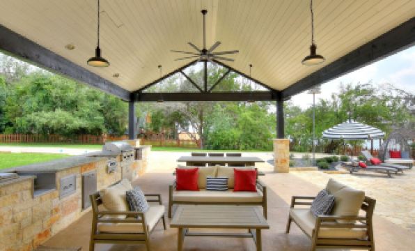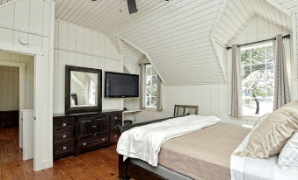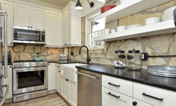 The Cottage at Paradise Cove is the perfect getaway for small families, close friends and intimate special occasions. With its beautiful outdoor setting of huge, mature trees and the Lake Travis waterfront views, the home fits seamlessly with its stone and wood interior. The interior of the home is warm with the fine furnishings, wood and stone touches, and provides a very comfortable setting while you stay indoors. However, with two great outdoor spaces, both the swimming pool/spa/outdoor living area that is in front of the home, and the beautiful backyard with huge shade trees and expansive views of Lake Travis, you might not want to spend much time inside.
