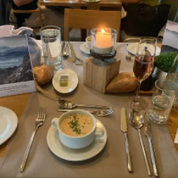 Wir hatten das Arrangement Kuschel Plausch und waren unter der Woche, was natürlich toll war, dass es extrem wenig Gäste gab. Somit konnten wir den kleinen, aber feinen Spa Bereich super gemütlich und ruhig nutzen. Das Abendessen (3 Gänge) war sehr viel, so dass man danach wirklich satt war. Am Frühstücksbuffet gibt es eine reichhaltige Auswahl, allerdings könnte etwas Gemüse, wie Paprika- oder Gurkenscheiben noch aufgetischt werden. Das Hotel ist modern eingerichtet und hat auch einen modernen Baustil mit viel Holz und Sichtbeton, was natürlich geschmackssache ist. Man hat die Möglichkeit, auf der Bergstation zu frühstücken, was bei gutem Wetter einen atemberaubenden Ausblick bedeutet und Frühstück in einmaliger Aussicht. Es gibt viele kürzere und längere Wanderwege ums Hotel, die auch im Winter nutzbar sind. Die Tiefgarage bitet breite Parkplätze und ist direkt ans Hotel angebunden. Unter der Woche gibt es nicht viele Aktivitäten, aber das war für uns völlig in Ordnung, da wir für Erholung und Entspannung da waren.