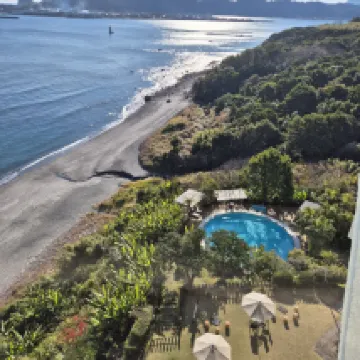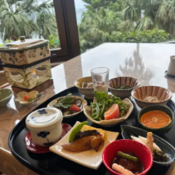 景觀漂亮,近沙浴,有免費amenity bar(每人限拿兩件),房間頗大,設施雖不太新但乾淨。露天溫泉望海。早餐味道還好,但擺盤精緻,許多配菜飲品選擇。酒店還有免費咖啡和detox water,推薦。